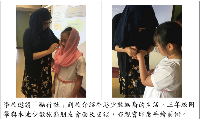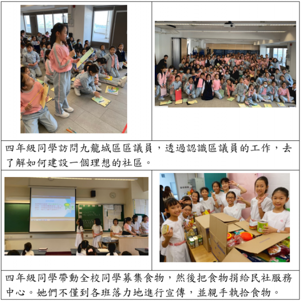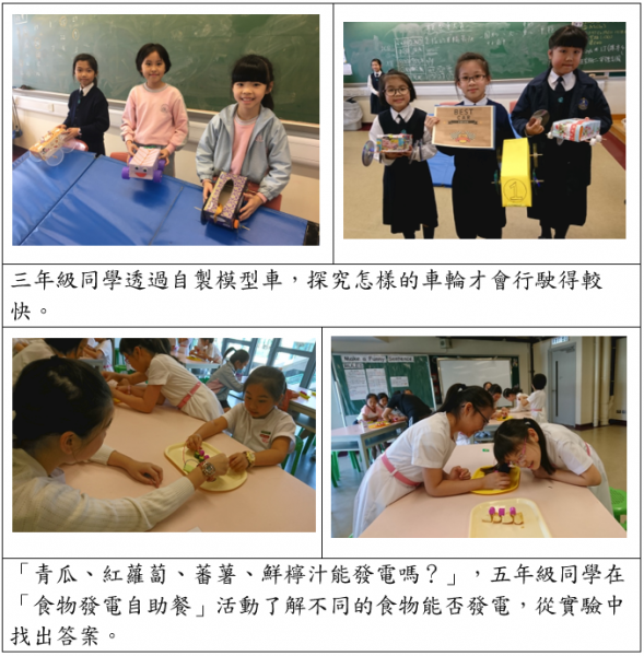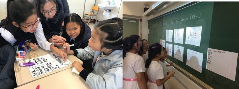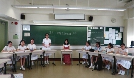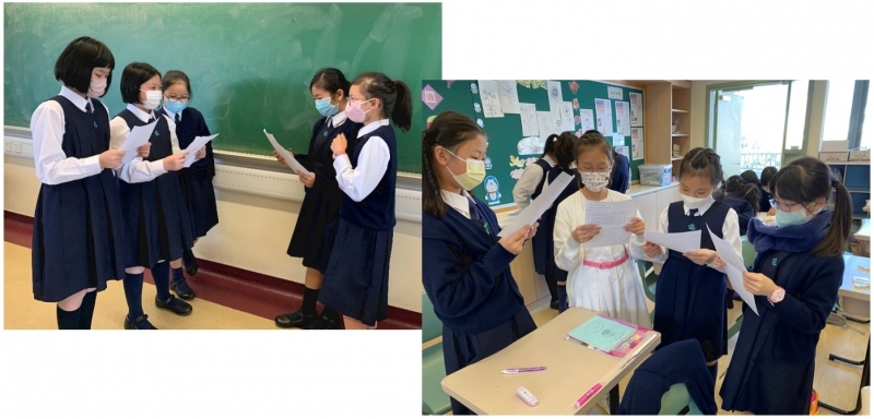 老師剪裁課程,設計與學生生活經驗相關的對話練習,教授與課題有關的詞彙,並輔以句式。本年度,四至六年級學生根據情境自行設計對話、進行排練並匯報演出,同學之間互相觀摩學習,除了提高了學生的學習動機,亦可增強她們的普通話溝通能力。