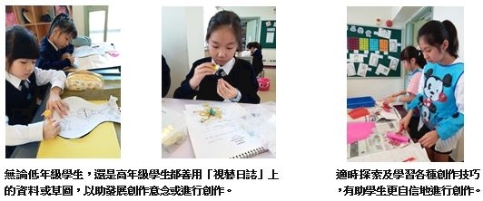 2. 先試驗後創作: 本科重視創作的歷程,學生需運用「視藝日誌」搜集資料、探索與 學習技巧及繪畫草圖等,從而發展學生的創造力。