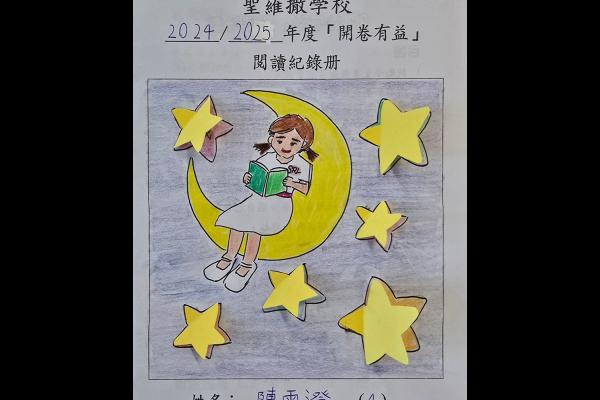 《開卷有益》小冊子讓同學記錄該學年所有閱讀的書籍,包括各類實體書及電子書。配合學校「摘星獎勵計劃」,期末會按閱書量(30本或以上3分、20本或以上2分、10本或以上1分)獎勵相應分數,以便換取禮物。