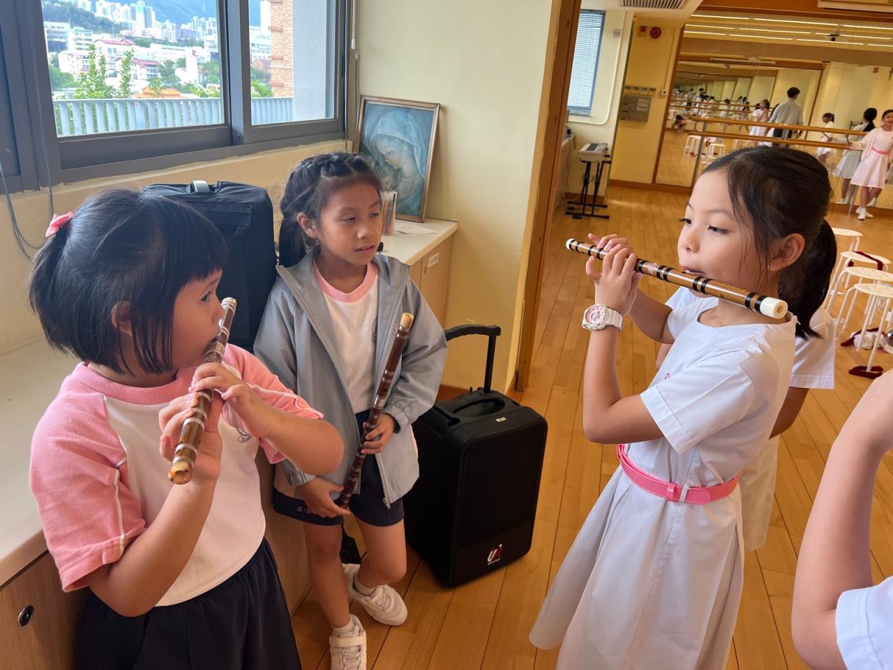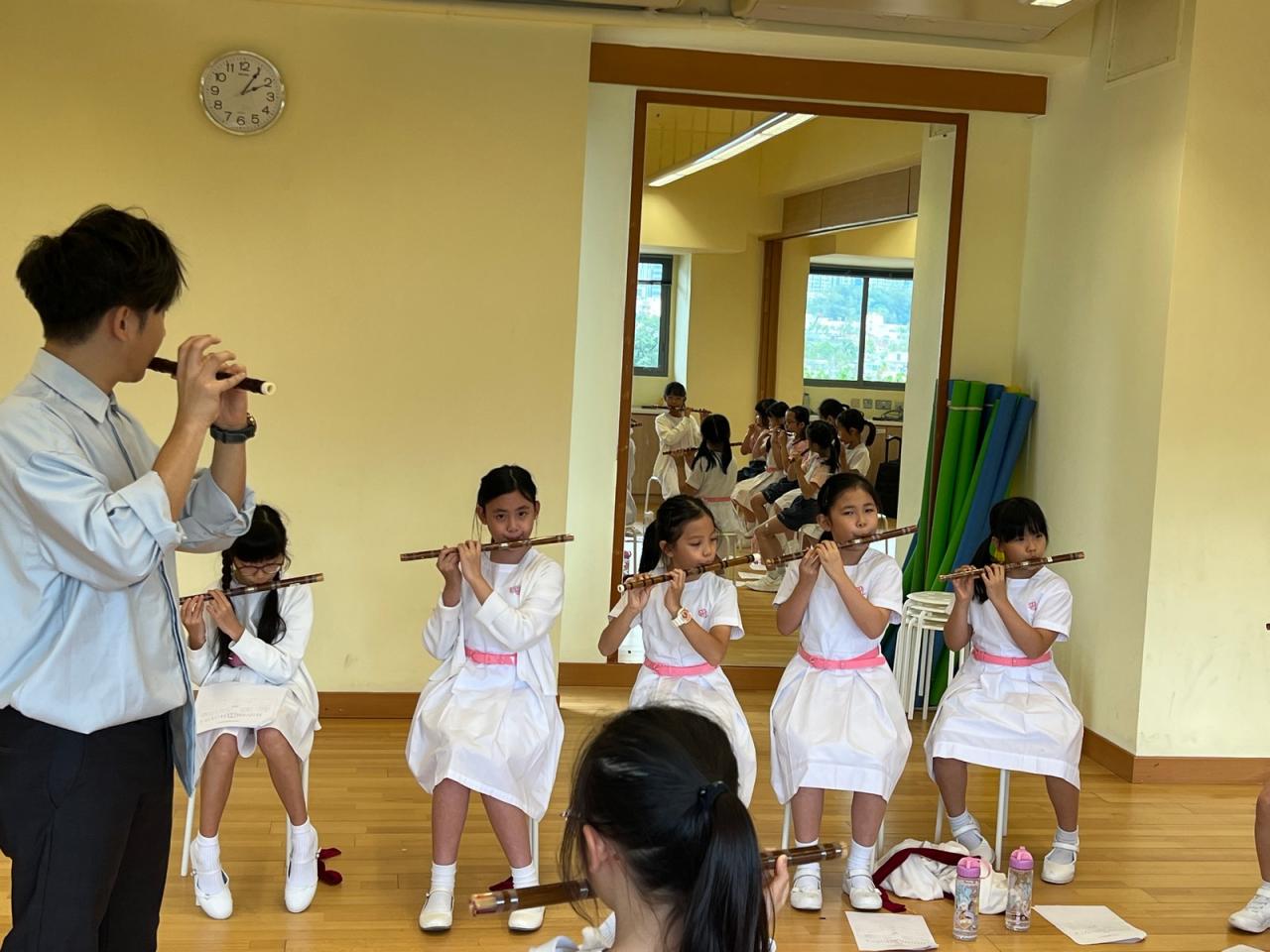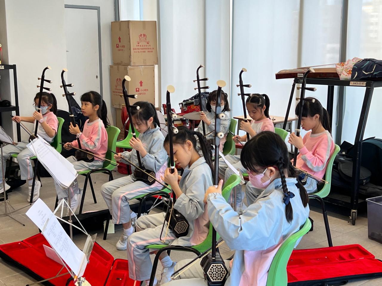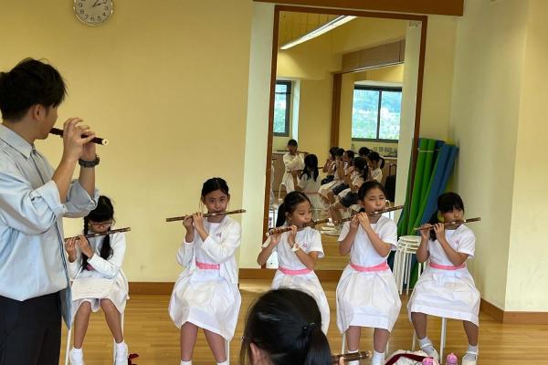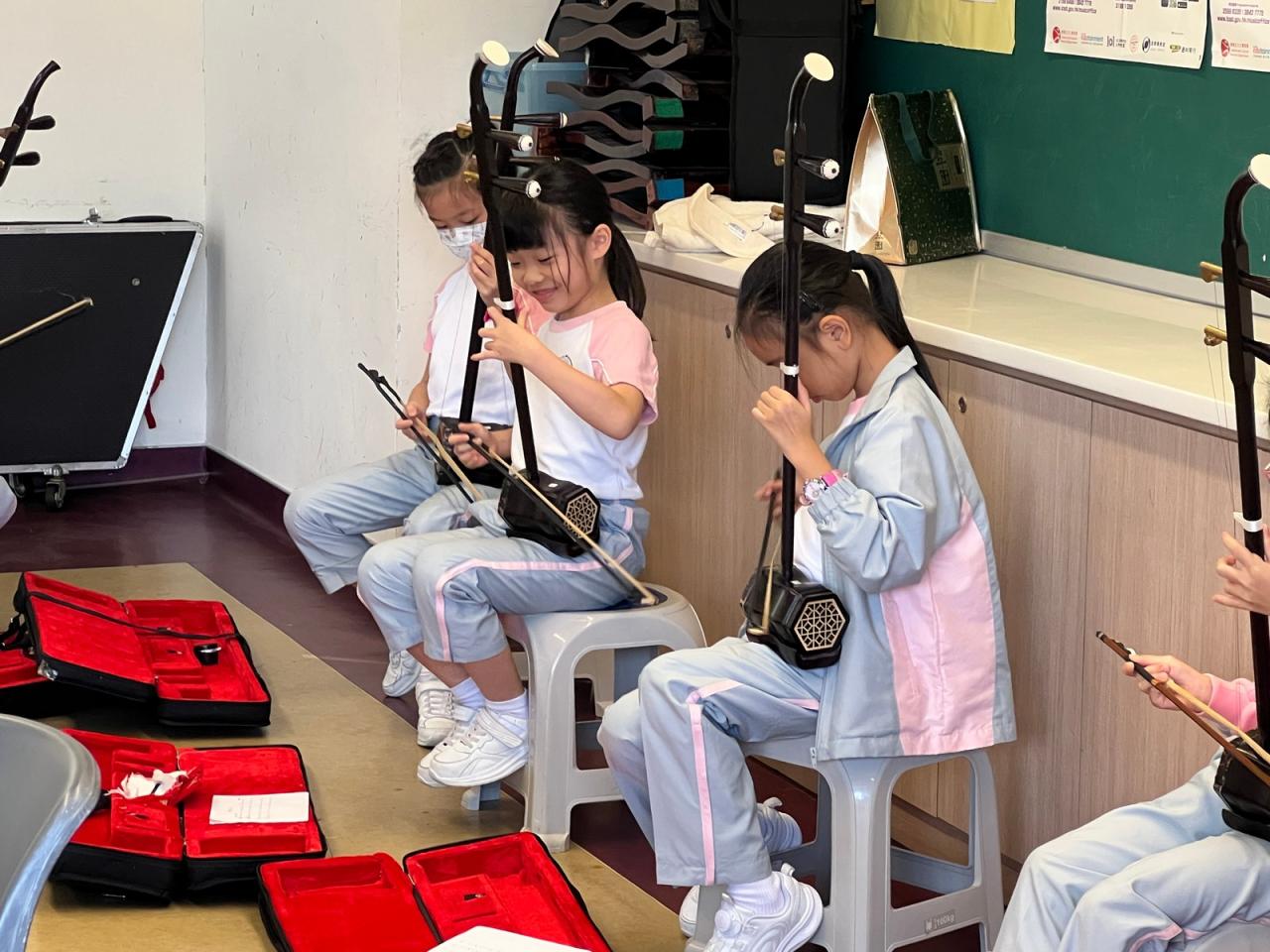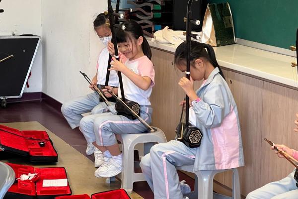 為讓小三學生認識中國傳統拉弦樂器-二胡,並培養學生對中華音樂的興趣與欣賞能力,本校小三特別開設二胡體驗班,由二胡導師教授,讓學生透過「看、聽、做」親身體驗,認識二胡的基礎拉奏及閱譜技巧。