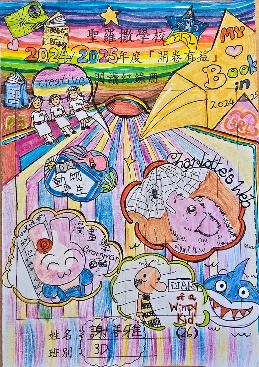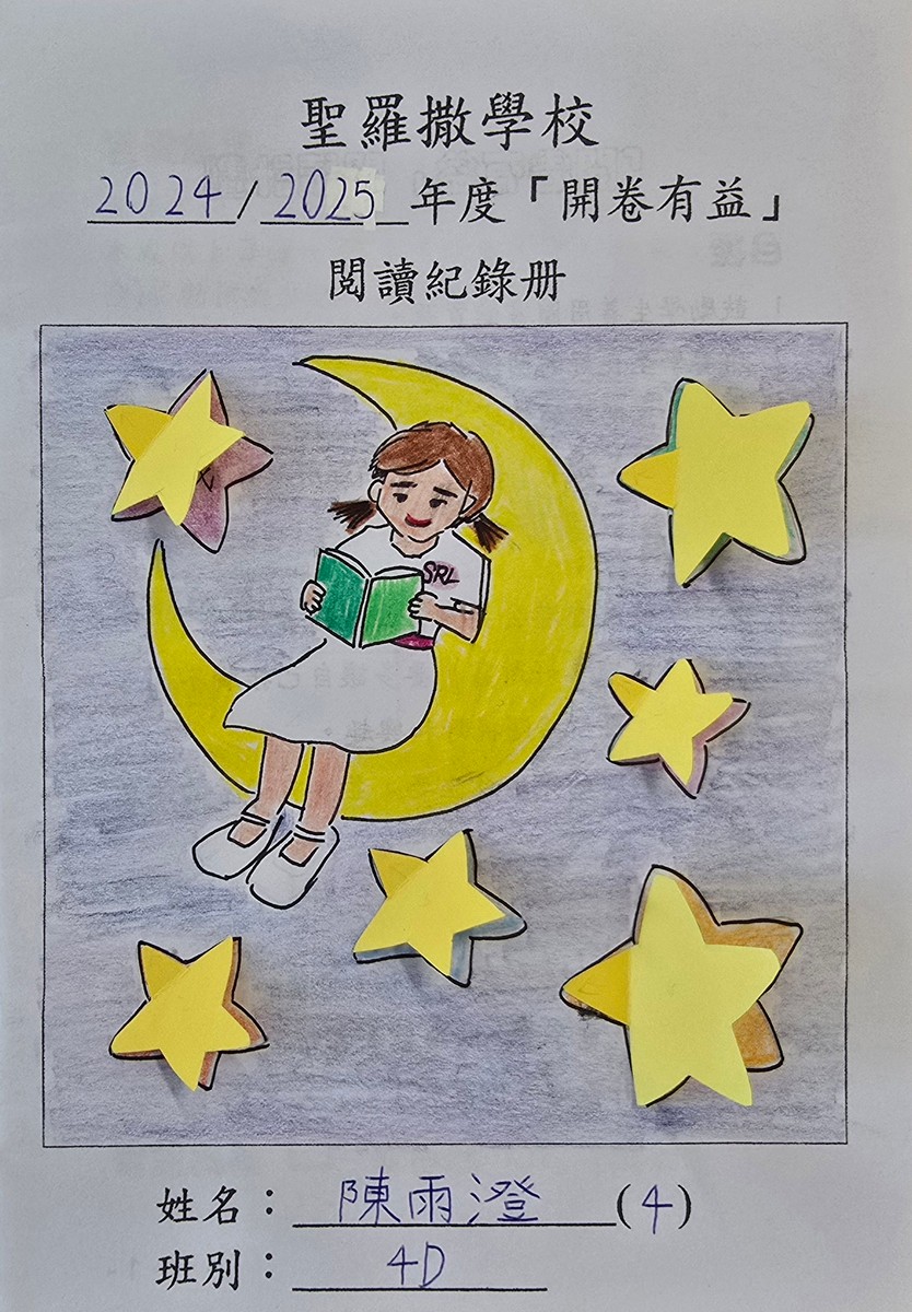 《開卷有益》小冊子讓同學記錄該學年所有閱讀的書籍,包括各類實體書及電子書。配合學校「摘星獎勵計劃」,期末會按閱書量(30本或以上3分、20本或以上2分、10本或以上1分)獎勵相應分數,以便換取禮物。