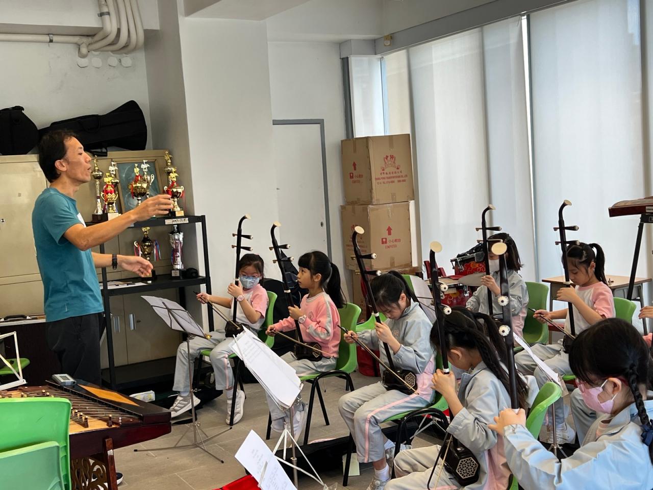 為讓小三學生認識中國傳統拉弦樂器-二胡,並培養學生對中華音樂的興趣與欣賞能力,本校小三特別開設二胡體驗班,由二胡導師教授,讓學生透過「看、聽、做」親身體驗,認識二胡的基礎拉奏及閱譜技巧。